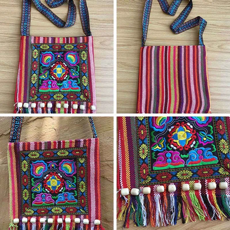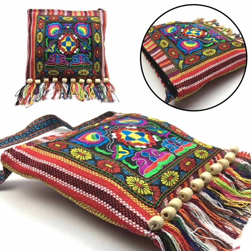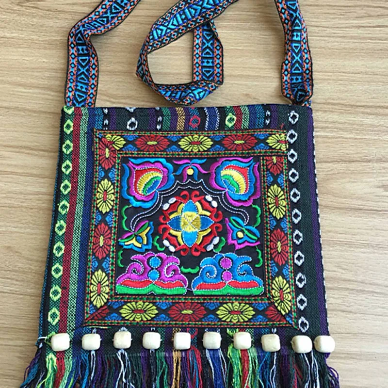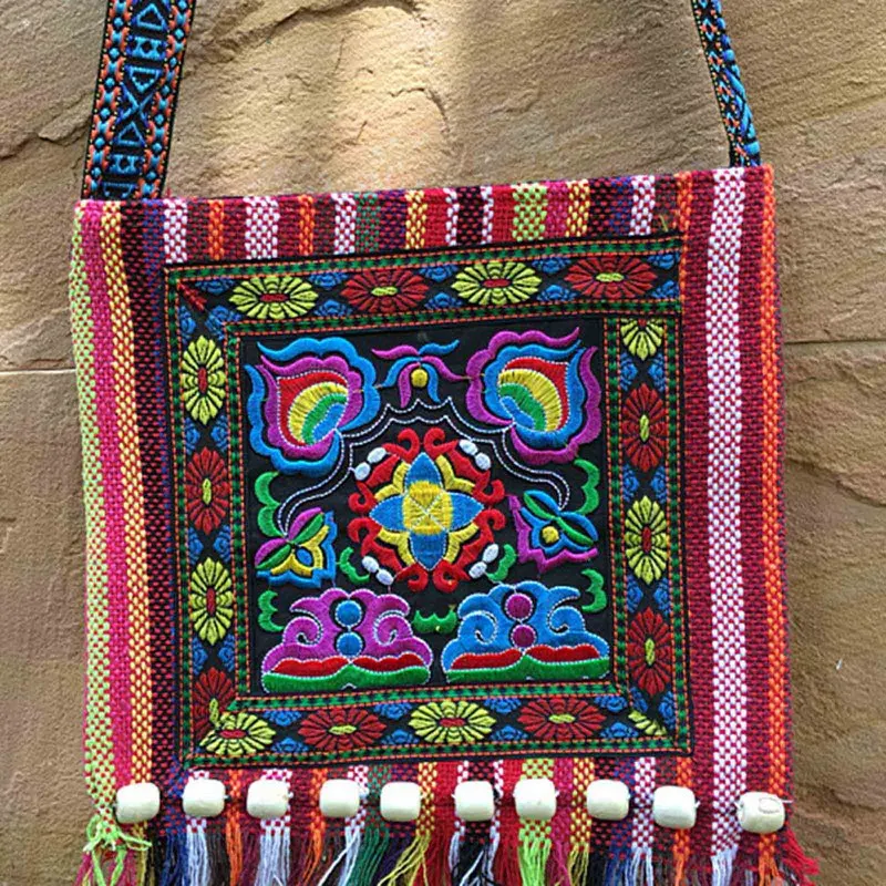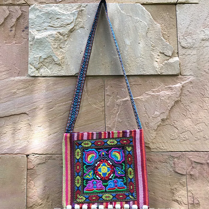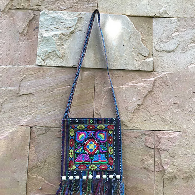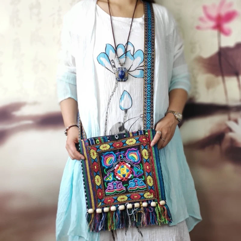 Vintage Hmong Tribal Ethnic Thai Indian Boho Shoulder Bag Message Bag for Women Embroidery Tapestry Tote Messenger