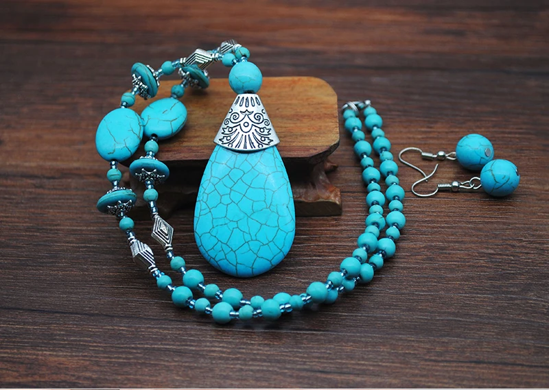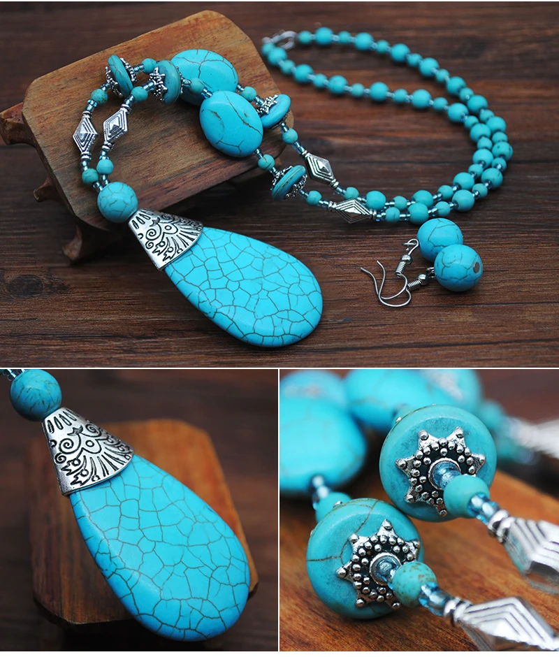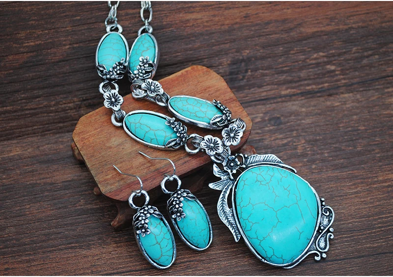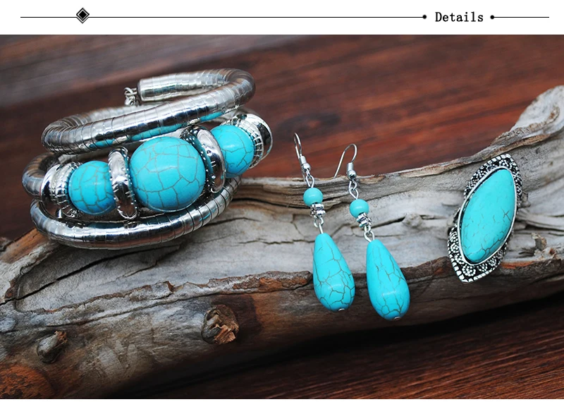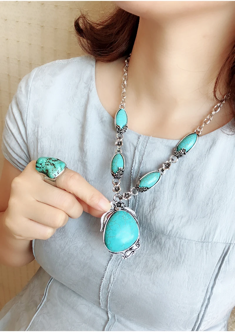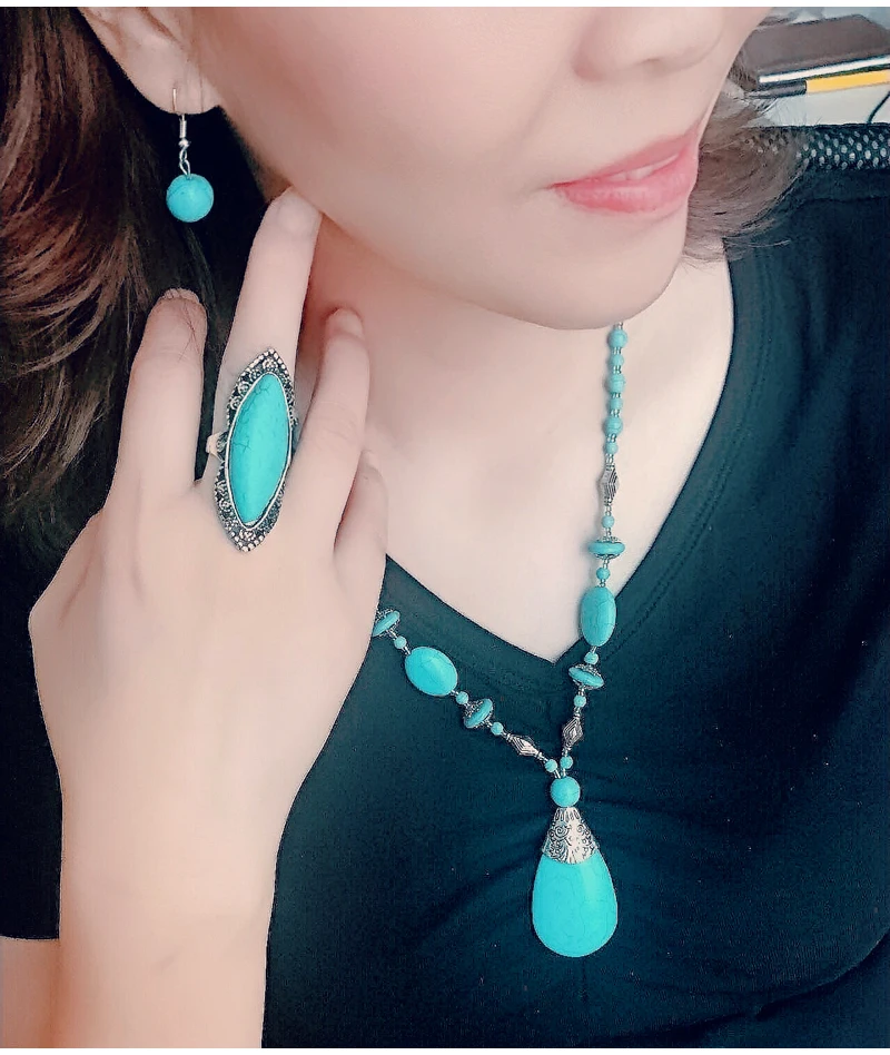 Women Fashion Turquoise Jewelry Set Vintage Silver Plated Accessories can fit normal occasion like: birthday party, anniversary, valentine's day, vacation, travel, daily were and so on.