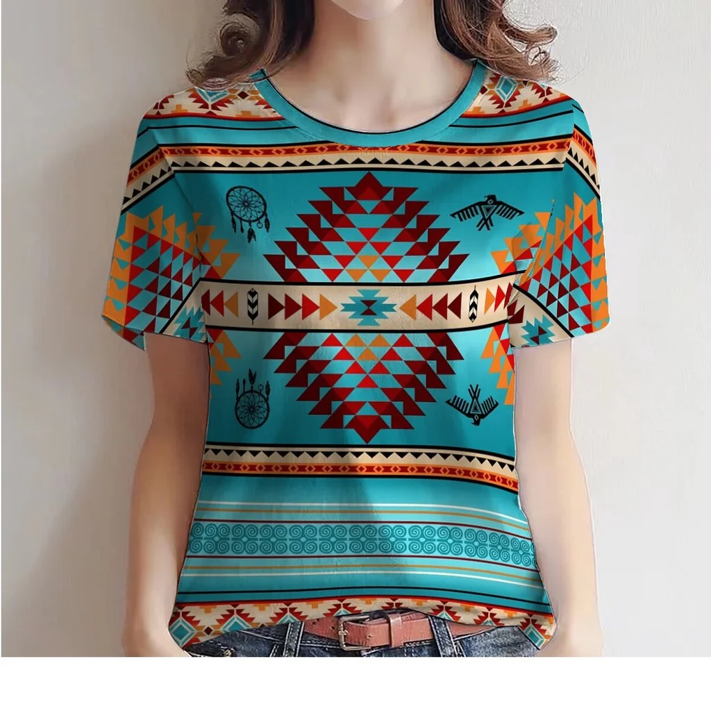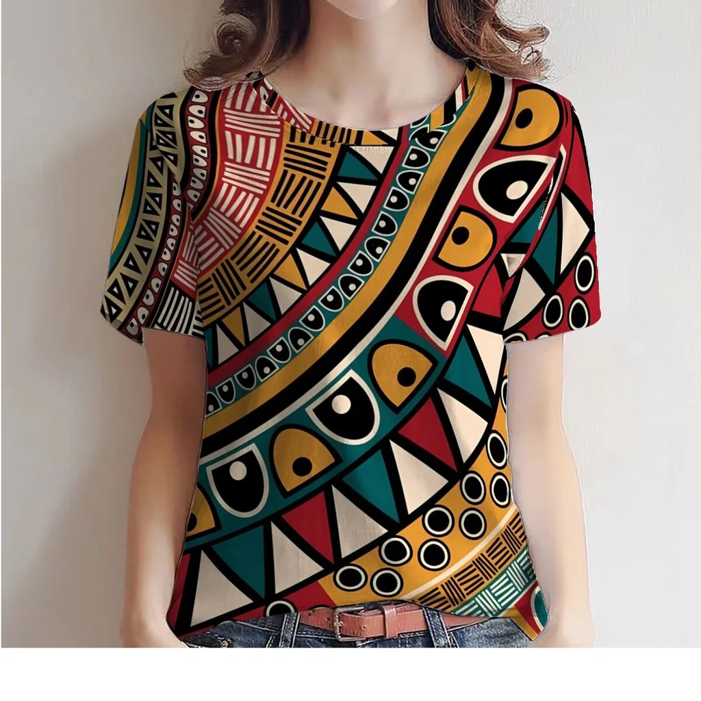 Women's T-Shirt for Women Summer Short Sleeve Loose Casual Flower Printed Top Indian Pattern Pullover T Shirts for Girls Sweater